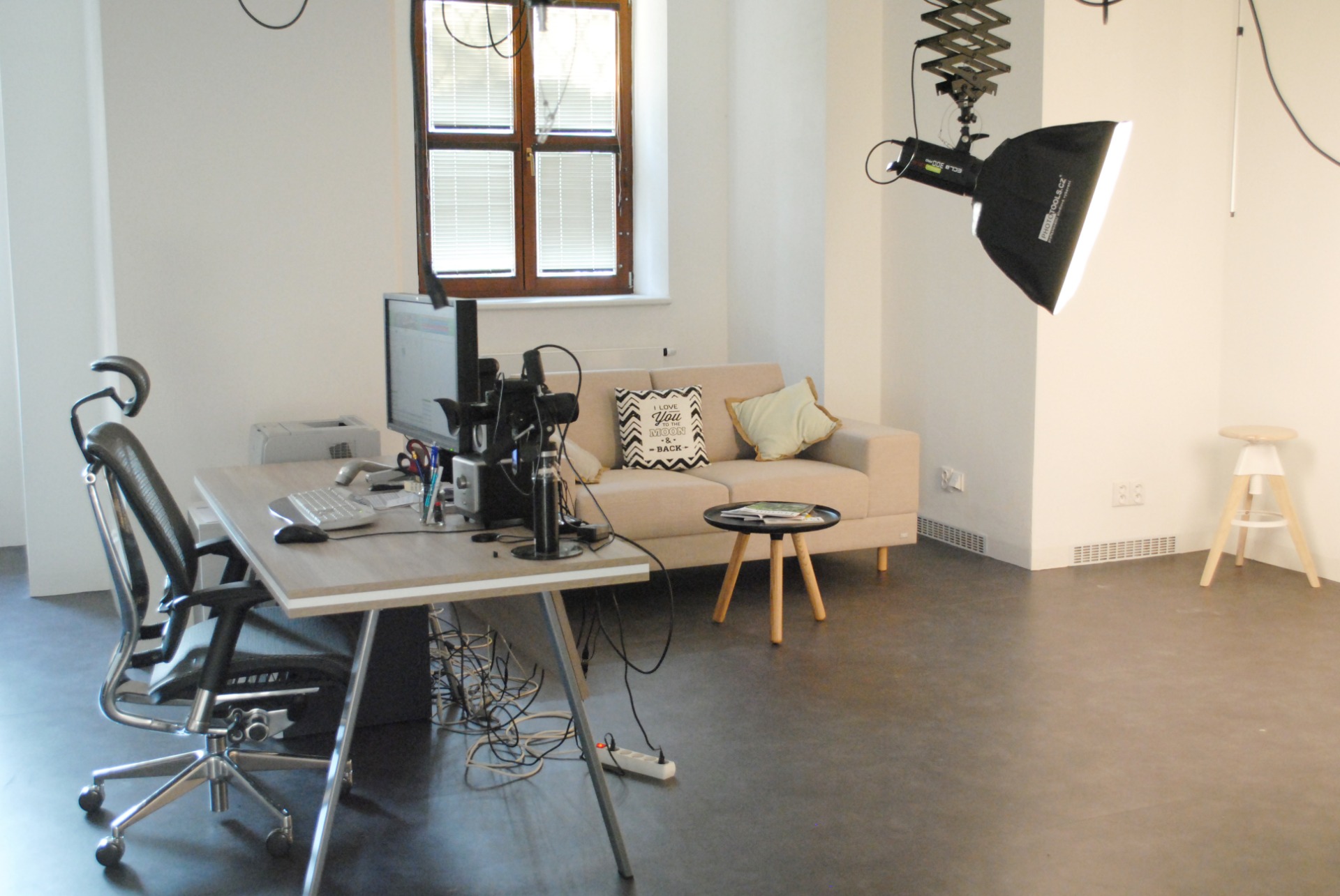 Návrh interiéru fotoateliéru - dispoziční řešení, výkresová dokumentace, seznam produktů a použitých materiálů.