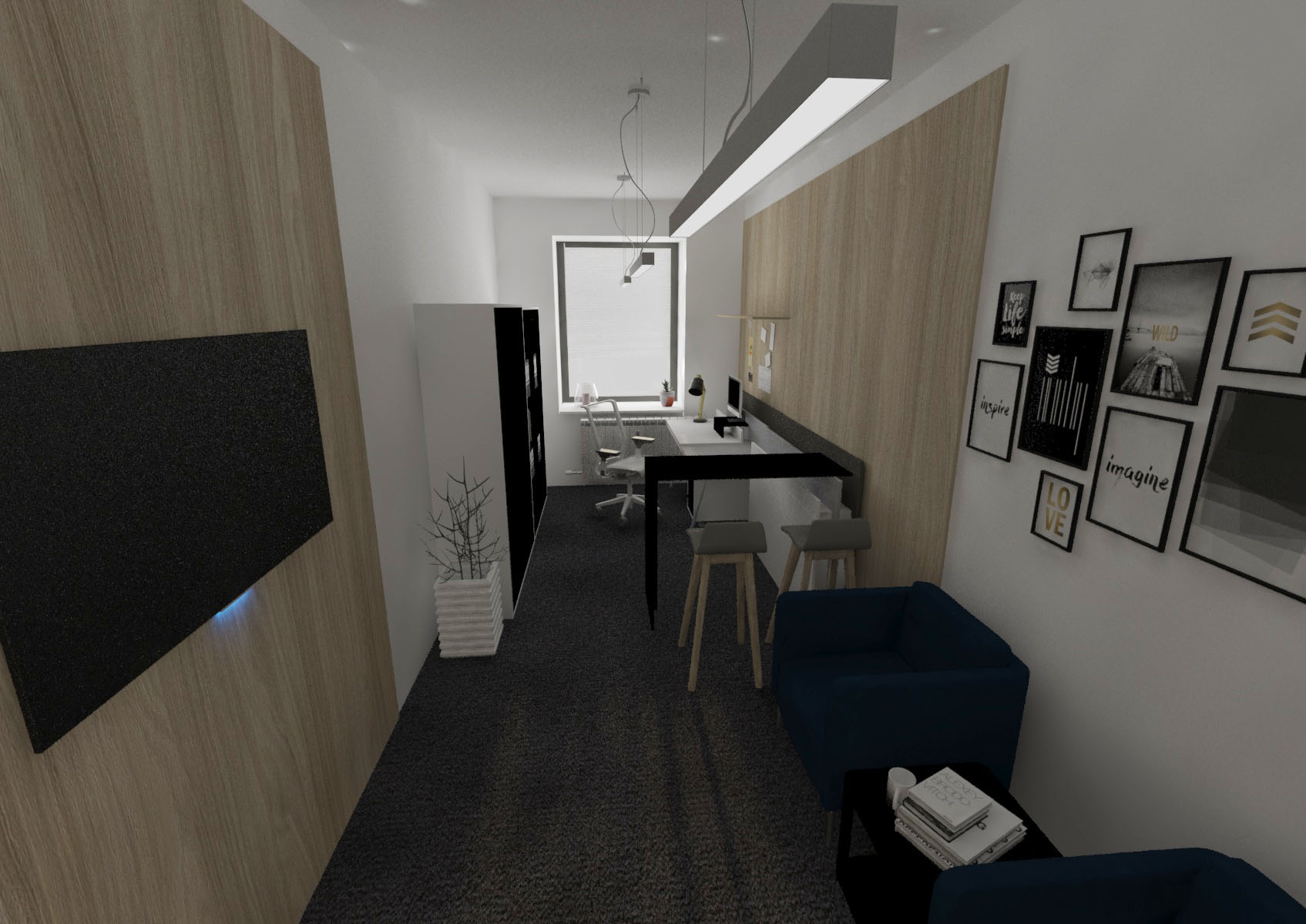 Realizace kanceláří pro vedoucího AVC MENDELU, sekretářky a fotografky. Všechny interiéry kanceláří jsou jednoduché a účelné s dostatečným pracovním místem.