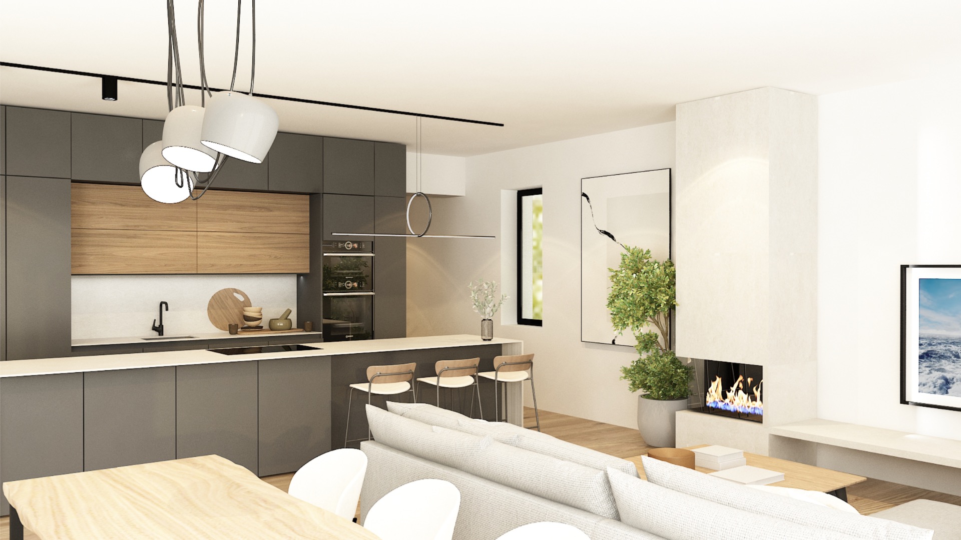 Jedná se o návrh i realizaci celého interiéru v domě o dispozici 4kk. Součástí jsou vizualizace obývacího pokoje s kuchyní, ložnice, dětského pokoje, kanceláře a koupelny.